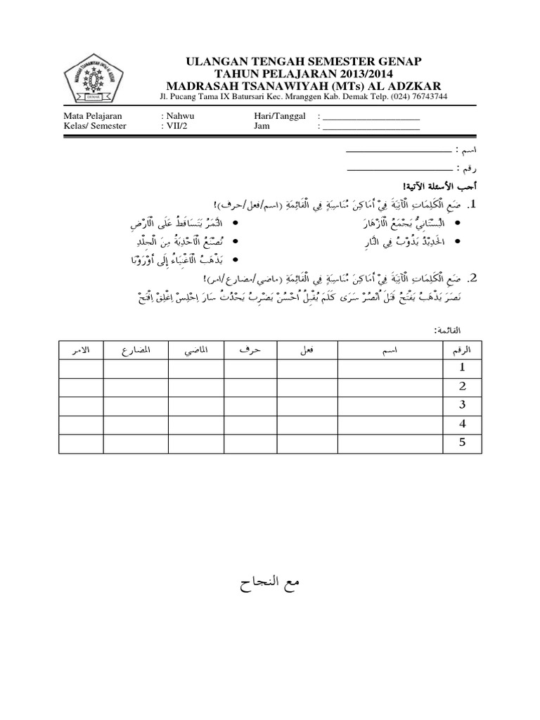 Contoh Soal Nahwu Dan Jawabannya Dikdasmen from imgv2-2-f.scribdassets.com We did not find results for: Check spelling or type a new query. Maybe you would like to learn more about one of these?