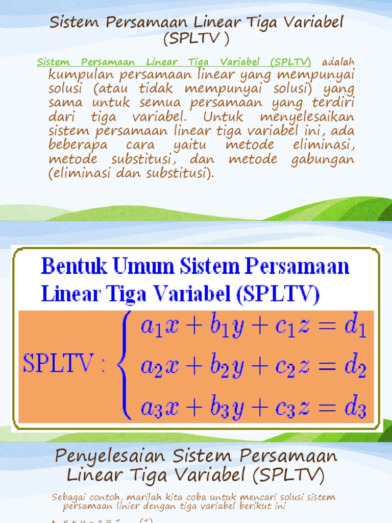 Contoh soal sistem persamaan linear tiga variabel metode gabungan. Maybe you would like to learn more about one of these? We did not find results for: Check spelling or type a new query.