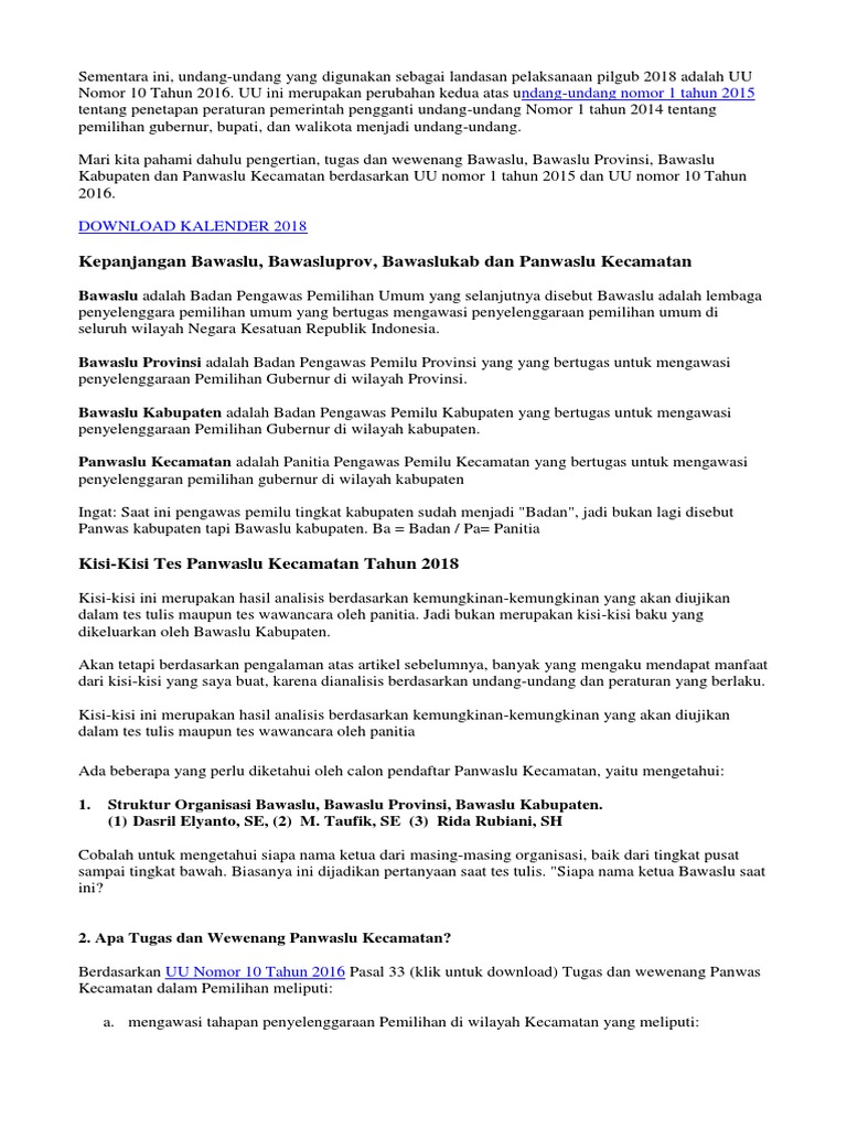 Menurut ketua pokja pembentukan pengawas tps, fakhri yang juga komisioner panwaslu kecamatan tanasitolo, tes wawancara ini merupakan bagian dari tahapan pelaksanaan pemilihan gubernur dan wakil gubernur dan bupati dan wakil bupati yang akan dilaksanakan pada tanggal 27. Nah inilah beberapa materi kisi dan soal yang keluar untuk tahun ini Seperti tes karakteristik pribadi (tkp) tes wawasan kebangsaan (twk) dan tes inteligensi umum (tiu). 15 pertanyaan jebakan pada saat tes wawancara panwascam, ppk dan pps ini untuk mempermudah dan membantu kita menerka hal apa saja yang biasanya muncul pada. Adapaun materi yang diujikan berkaitan dengan penyelenggaraan pemilu yang tertuang dal.