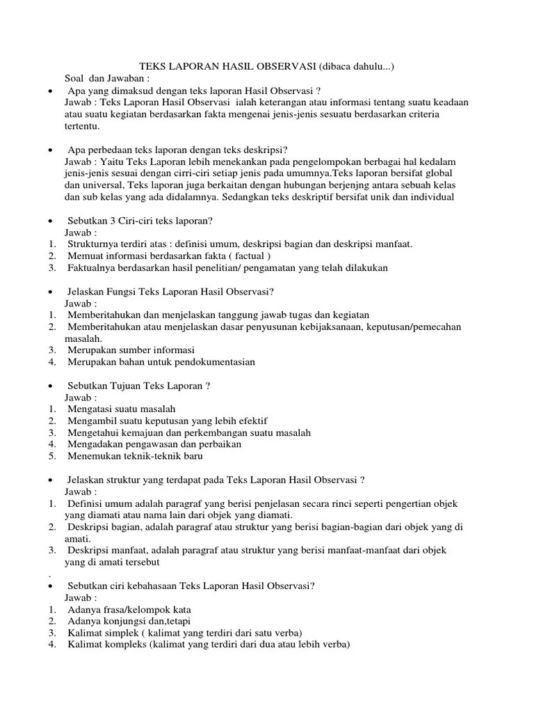 Laporan hasil observasi inilah yang disebut dengan teks sebutkan dan jelaskan struktur teks laporan observasi. Bisa juga hal umum lainnya.